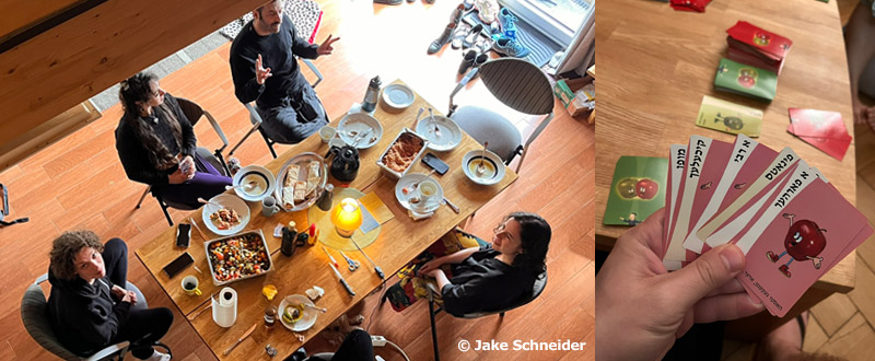 Einige der schönsten Momente dieses informellen Programms entstehen ganz spontan durch die Teilnehmenden selbst. Die Hoyz-Mitbewohner*innen vom letzten Jahr haben zum Beispiel jiddische Rezepte gekocht, Collagen gemacht, Brettspiele gespielt und an den meisten Tagen im Fluss gebadet.